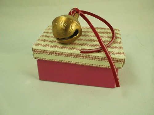 This is a great bell, with leather strap, in a nice hand wrapped package, and a candy cane striped lid. The bell sits on a nest of 'reindeer snow'. This particular bell is an ACTUAL sleigh bell, gleams, has good weight, brass, measuring 1 inch diameter. People young and old love these. There are no company logos or marks anywhere - so you and your loved one can be assured that these are authentically elf-made and not mass produced. These make a great gift for any Polar Express Train / movie lover, OR for anyone who you wish to deliver the "BELIEVE" message to!