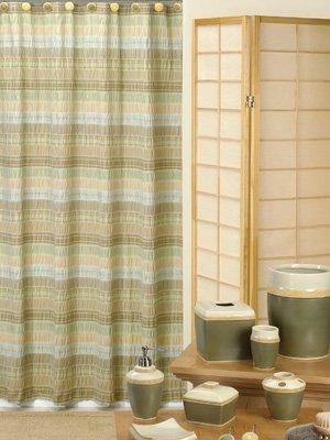 Where You can buy Sage Green tan brown earth tones Striped CRINKLE FABRIC SHOWER CURTAIN Bath Decor?